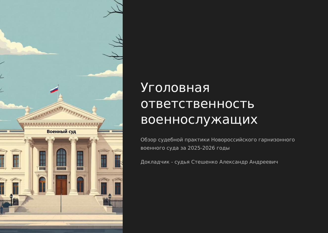 Традиционно, в соответствии с планом взаимодействия Новороссийского гарнизонного военного суда со Службой в городе Темрюке Пограничного управления ФСБ России по Краснодарскому краю на 2026 г., в целях правового информирования, соблюдения законности, укрепления правопорядка и воинской дисциплины, а также профилактики коррупционных правонарушений, судья Стешенко Александр Александрович выступил перед военнослужащими указанной Службы с докладом на тему: «Уголовная ответственность военнослужащих за совершение преступлений против порядка прохождения военной службы. Обзор судебной практики за 2025 – 2026 г.г.». В ходе выступления были приведены примеры судебной практики суда, доведены последние изменения законодательства, после чего даны ответы на интересующие слушателей вопросы. |